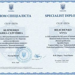 2021 рік – отримала сертифікат лікаря-спеціаліста за спеціальністю «медична психологія».