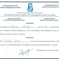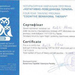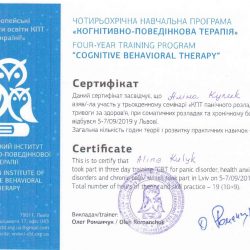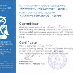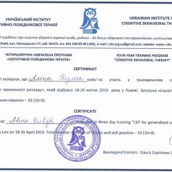 - 2015 рік розпочала навчання в Українському інституті когнітивно-поведінкової терапії, м. Львів