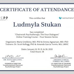- 2014 р. – Мindfulness – Based Cognitive Therapy (20 hours theory and practice)